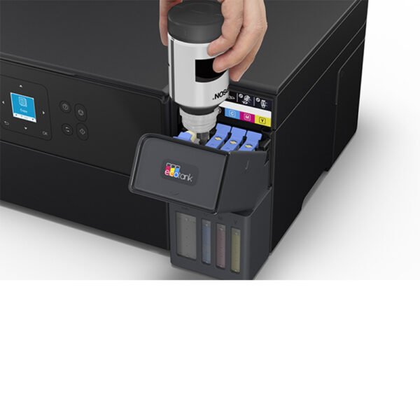 Rendimiento / capacidad de tinta | • Rendimiento del kit de botellas iniciales: hasta ~ 8.500 páginas en negro y ~ 6.500 páginas en color • Sistema de tanques de tinta recargables (sin cartuchos tradicionales) • Suministros de tinta: botellas T504 (negro T504120‑AL, cian T504220‑AL, magenta T504320‑AL, amarillo T504420‑AL) |