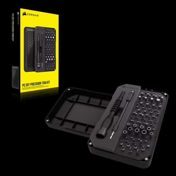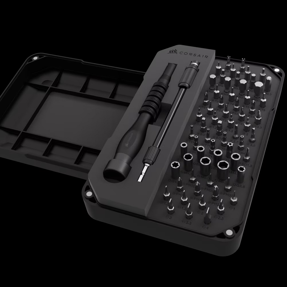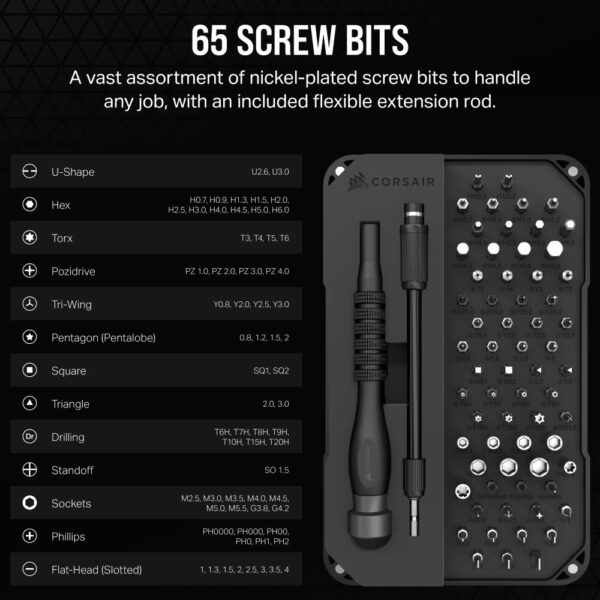 1 destornillador CORSAIR, 1 alargadera flexible, 65 puntas de destornillador
